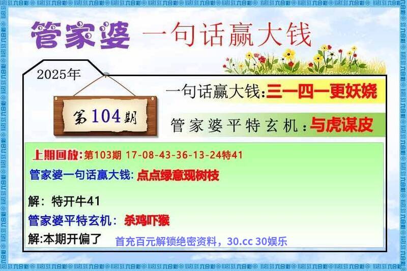 104期:🎇平特一尾🎇『8888尾』🎯开:狗32