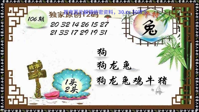 106期:③头中特▶2头3头4头◀开:猪43准